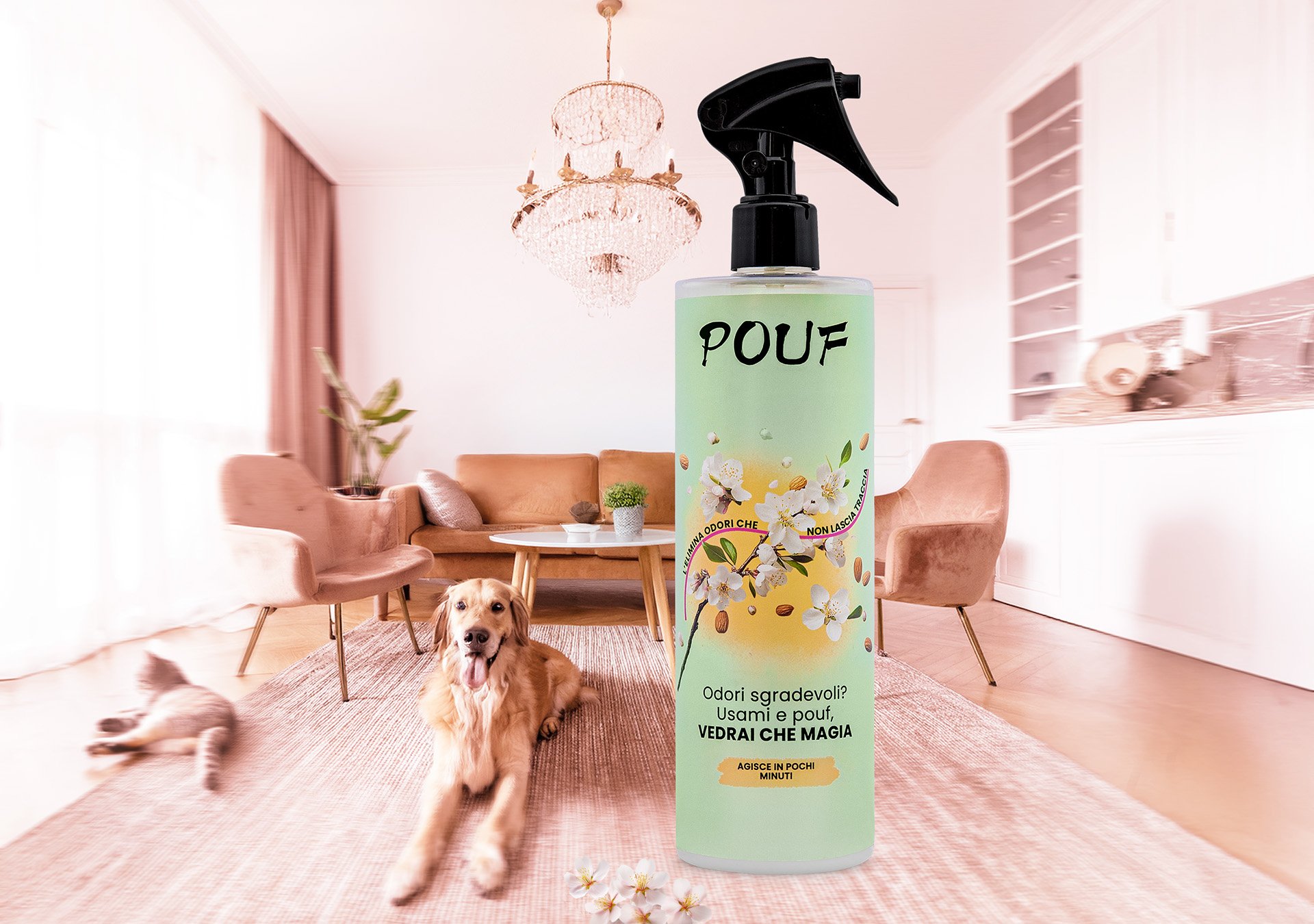 Pouf cattura e neutralizza le molecole che generano cattivo odore, lasciando gli ambienti immediatamente più freschi. Appena spruzzato, sentirai una delicata fragranza di mandorle, che svanirà nel giro di pochi minuti, lasciando la stanza con un profumo neutro e pulito. Non copre: elimina.